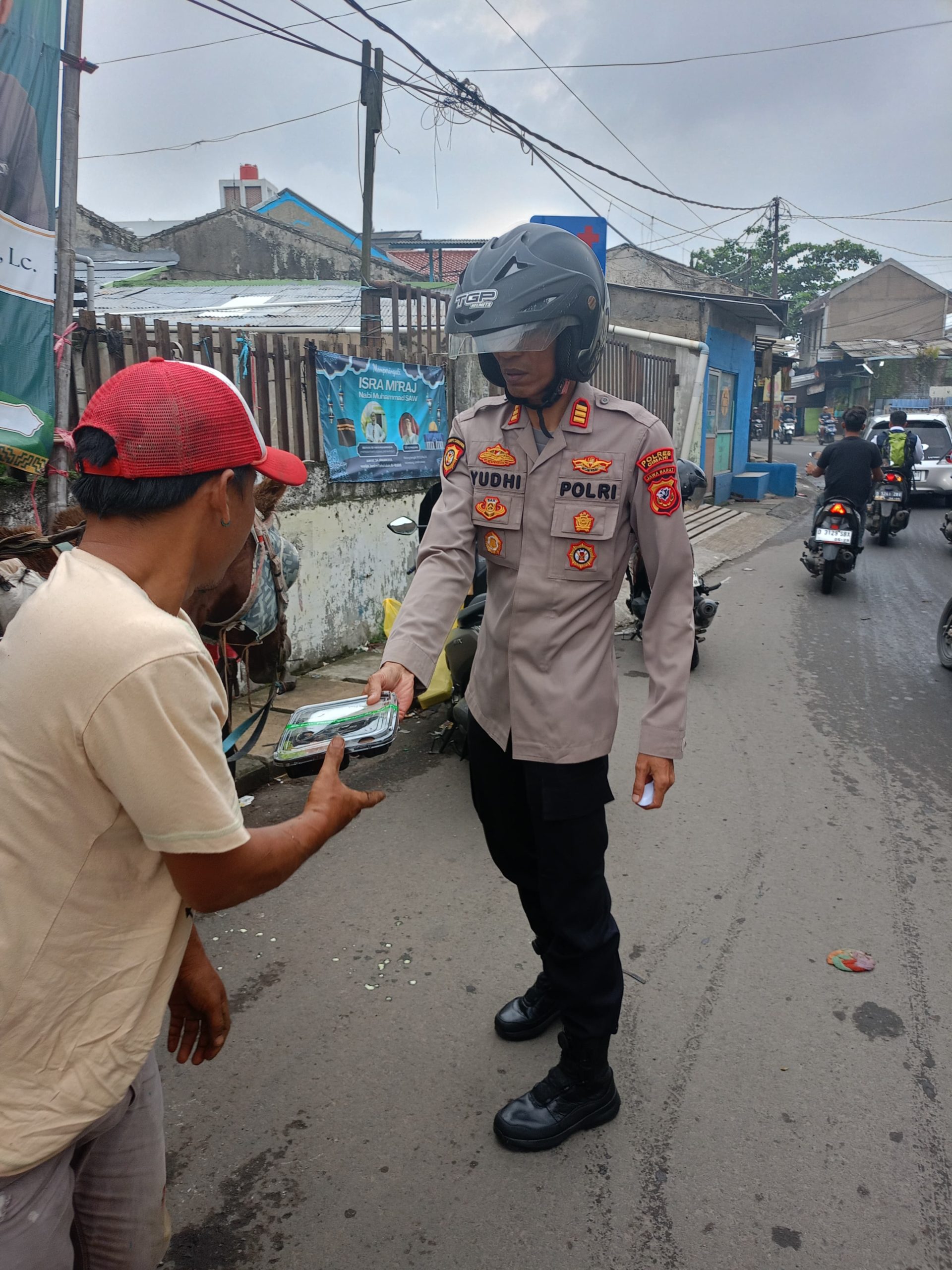 republikberita.id (Kota Cimahi) – Aksi humanis dilakukan Kapolsek Cimahi Selatan Polres Cimahi, AKP Yudhi Herianto, dalam kegiatan patroli pagi. Tak hanya melakukan pengaturan lalu lintas dan pengecekan kesiapan personel di lapangan, AKP Yudhi juga membagikan sarapan gratis kepada masyarakat kecil yang ia temui secara acak di jalan.